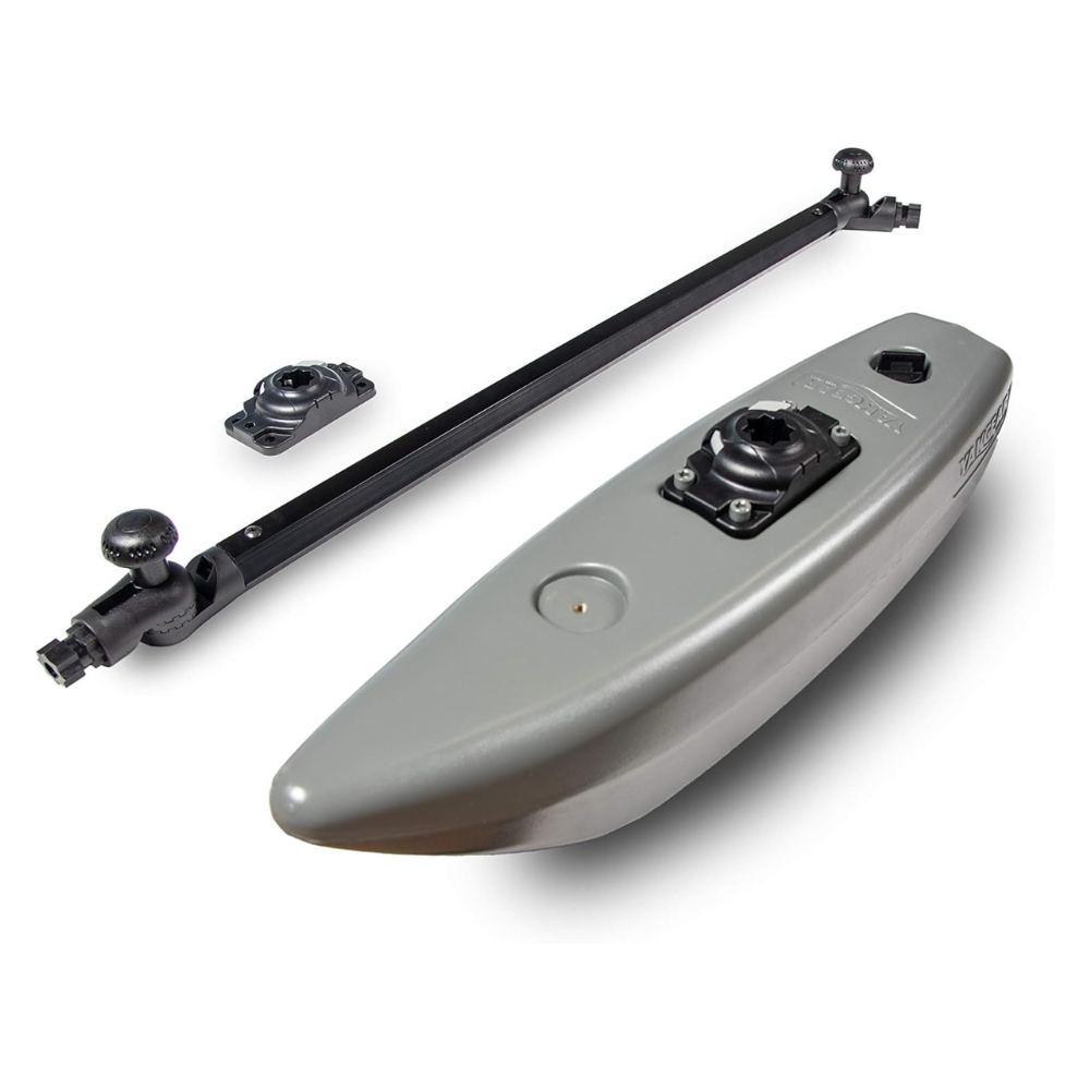 The new Gen 2 YakGear outriggers help you feel safe and secure in your kayak or canoe by utilizing the stabilizing effects of the re-designed floats. Stability while paddling is a problem for some paddlers. Whether you are standing to sight cast at fish, traversing through choppy waters, or paddling with the kids, the YakGear Outrigger system provides a more comfortable paddling experience. The YakGear Outriggers provide an easy to install safety net for everything from rocking back and forth to toppling into the water. This set comes with (2) outriggers, one for the port and one for the starboard side of your watercraft. The adjustable outrigger arms are 30 inches long and will provide a float base roughly 22 inches from the port and starboard side of the boat. The outriggers are attached by using a RAILBLAZA StarPort base mounted to the boat. The outriggers can be removed at any time making your watercraft easy to transport, leaving only the RAILBLAZA base. The adjustable outrigger arms can be raised independently if you are getting close to a dock or other obstruction. Installation placement of the outriggers may be mounted in the front or rear of your watercraft. The included floats have pre-installed threading (1/4 x 20 brass insert) to mount a RAILBLAZA StarPort HD (included) directly to the float, which is used to connect to the outrigger arms; and a RAILBLAZA MiniPort base (not included) on your float, giving you the ability to mount another RAILBLAZA StarPort accessory of your choice (amazing camera angles using the Railblaza Camera Kit or Camera Adaptor). These outriggers can attach to a canoe by using a piece of Hardie board (not included). These outriggers are best for total weights under 350 pounds. As always, this complete kit comes with all stainless steel installation hardware, installation instructions, and rigging tips from YakGear.